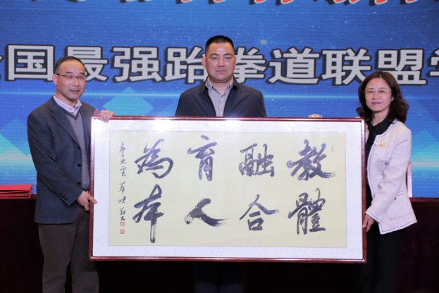 南京体育学院运动训练学院党总支书记张亚军向田高中曹李莉校长授予“南京体育学院生源基地”匾牌,签订生源基地建设合作协议。南京田家炳高级中学校长曹李莉、南京育英外国语学校校长华勇、南京市体育运动学校校长刘京鹏进行跆拳道联盟学校签约仪式,最后,南京田家炳高级中学及南京育英外国语学校共同向南京市体育运动学校赠送“体教融合 育人为本”匾额。
