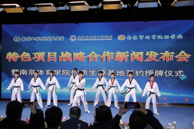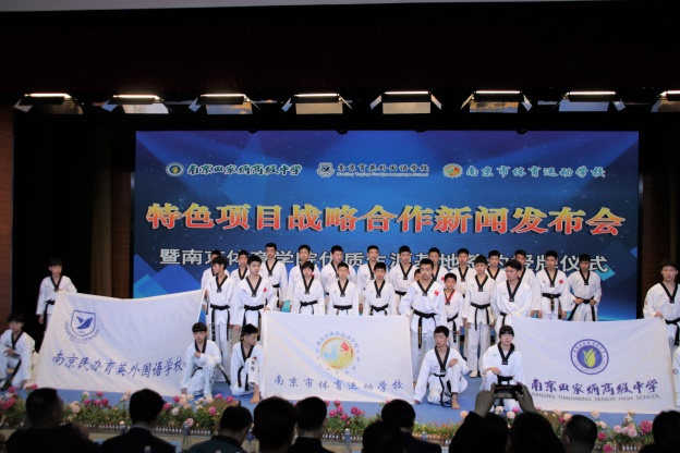 4月21日上午,南京田家炳高级中学、南京育英外国语学校、南京市体育运动学校在田家炳高级中学学生剧场联合举行三校“特色项目战略合作新闻发布会”,正式签约共同打造“全国最强跆拳道联盟学校”!