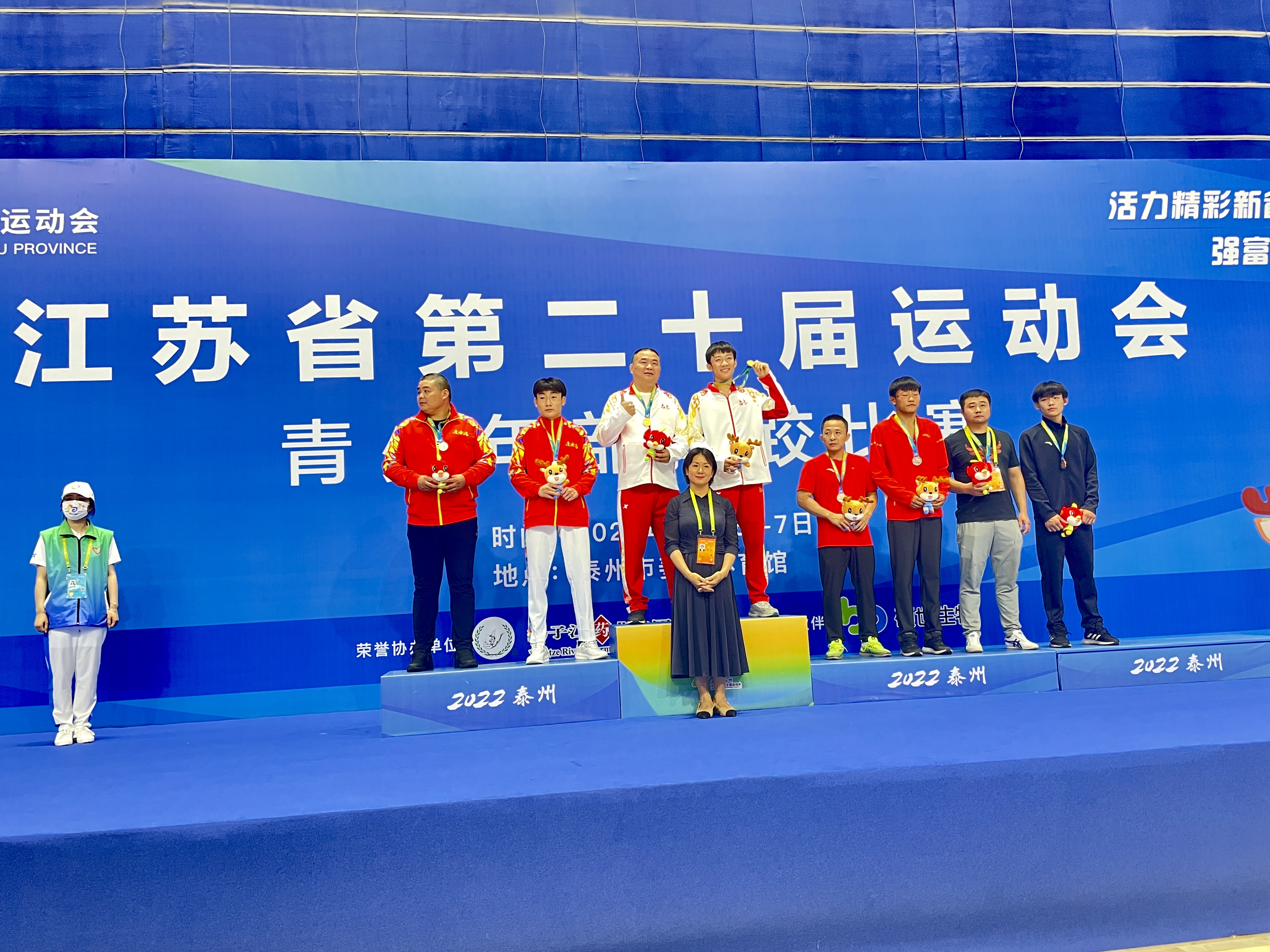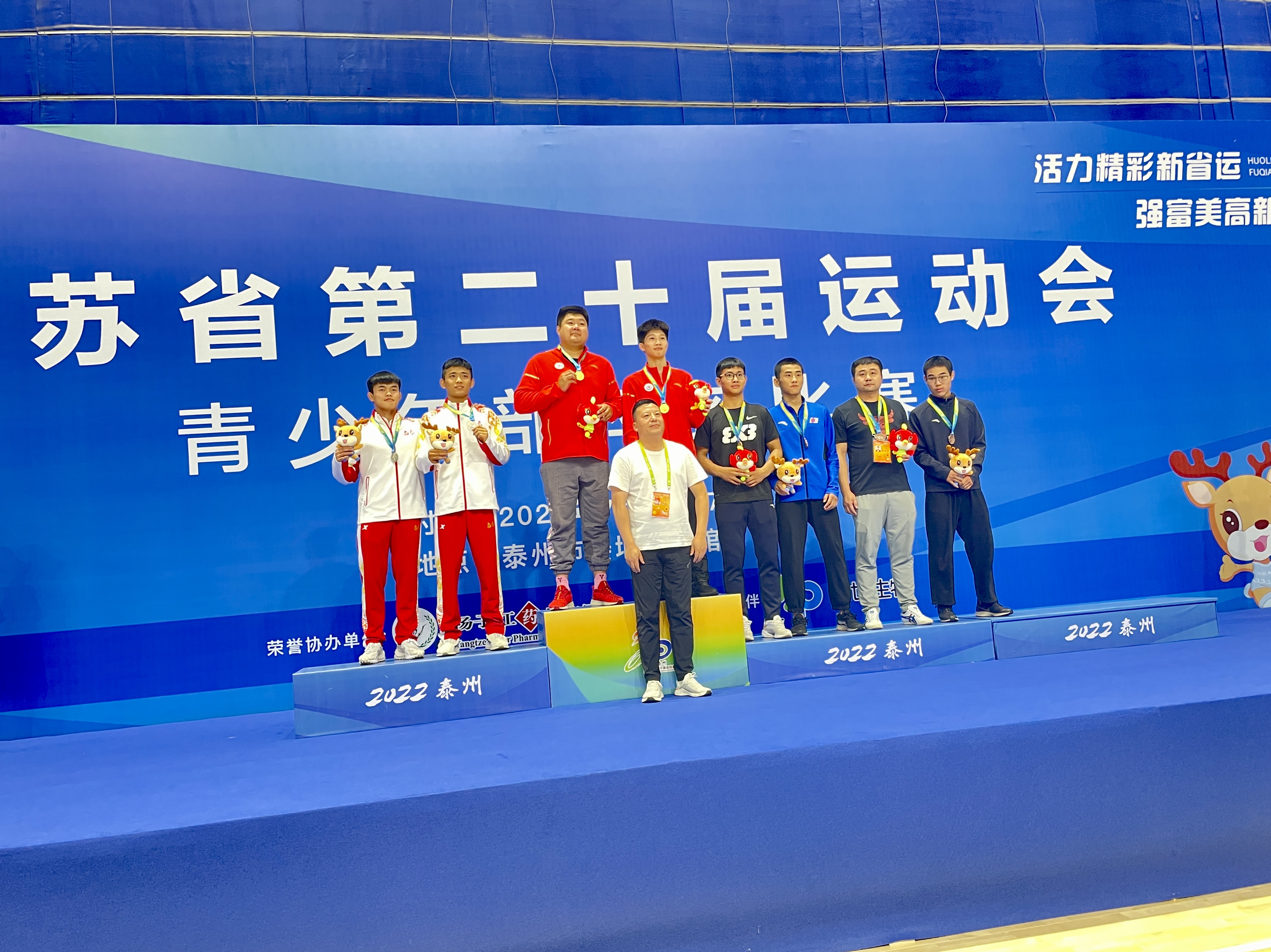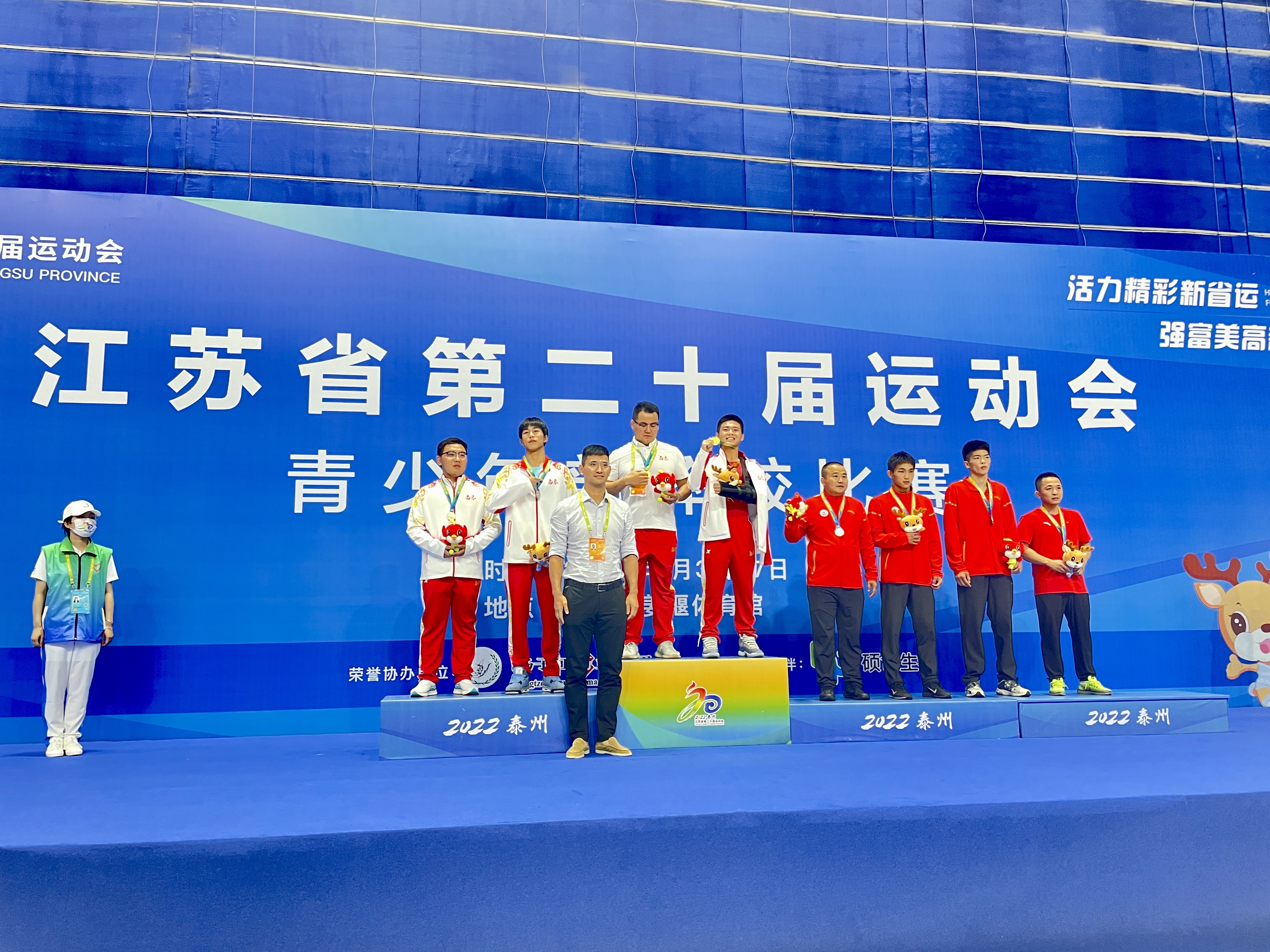 7月5日,江苏省第二十届运动会摔跤项目男子甲组古典式摔跤比赛正式拉开战幕。南京市重竞技运动学校摔跤健儿发挥出色,夺得了2金2银,其中65kg级吴子涵、71kg级顾佳乐双双夺冠,65kg级郑磊磊、60kg级高新刚获得银牌。