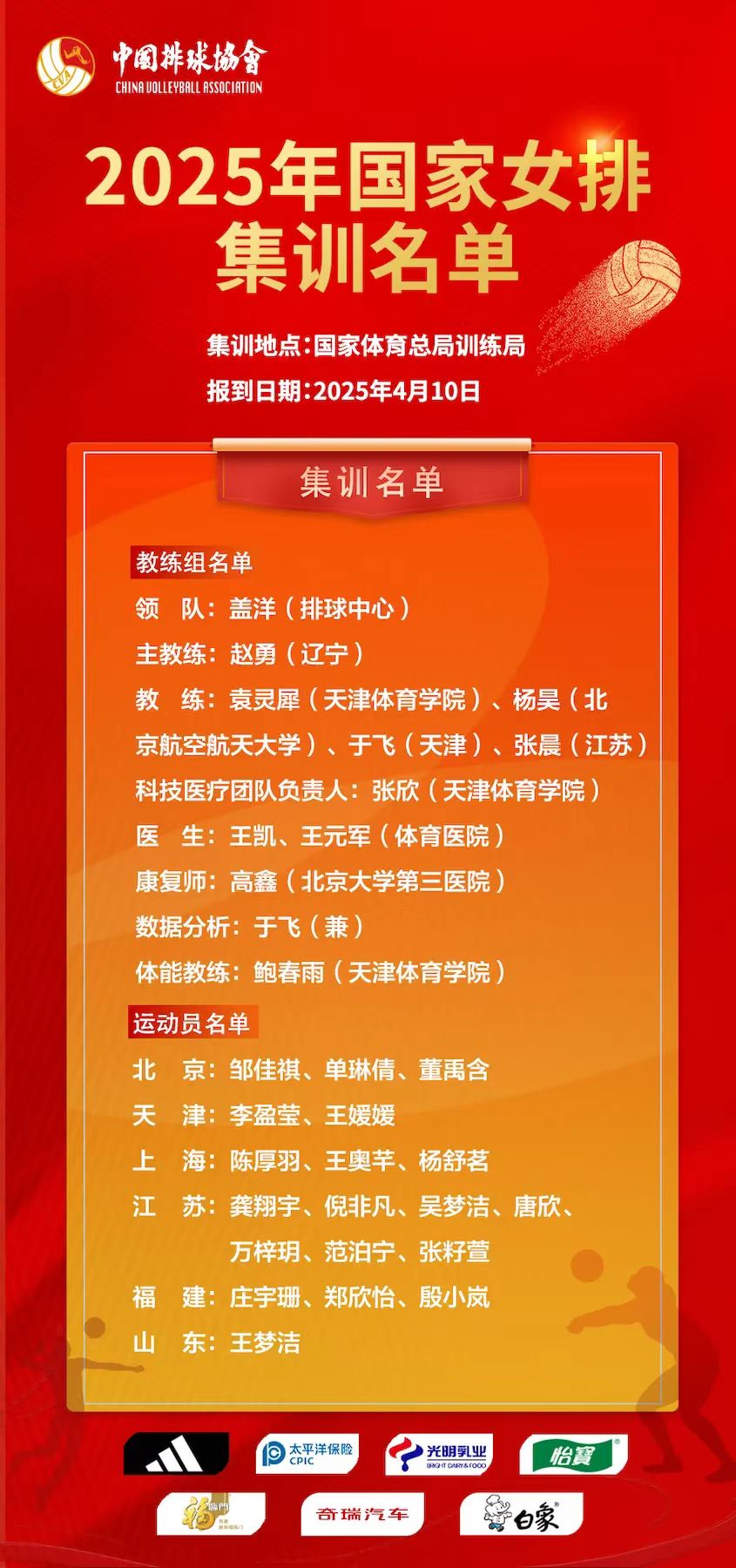 4月10日,中国排球协会正式公布了2025年国家女排集训名单,由南京市中山东路体育运动学校输送的倪非凡、万梓玥、张籽萱、邹佳祺四名运动员凭借出色的竞技水平和综合素质成功入选。
