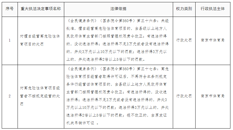 南京市体育局重大执法决定法制审核目录(2022.11.25)