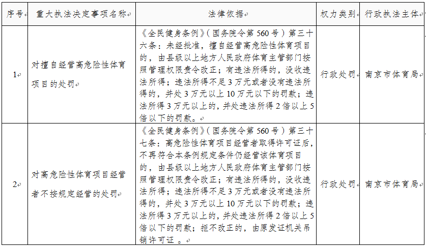 南京市体育局重大执法决定法制审核目录公示(2023年)