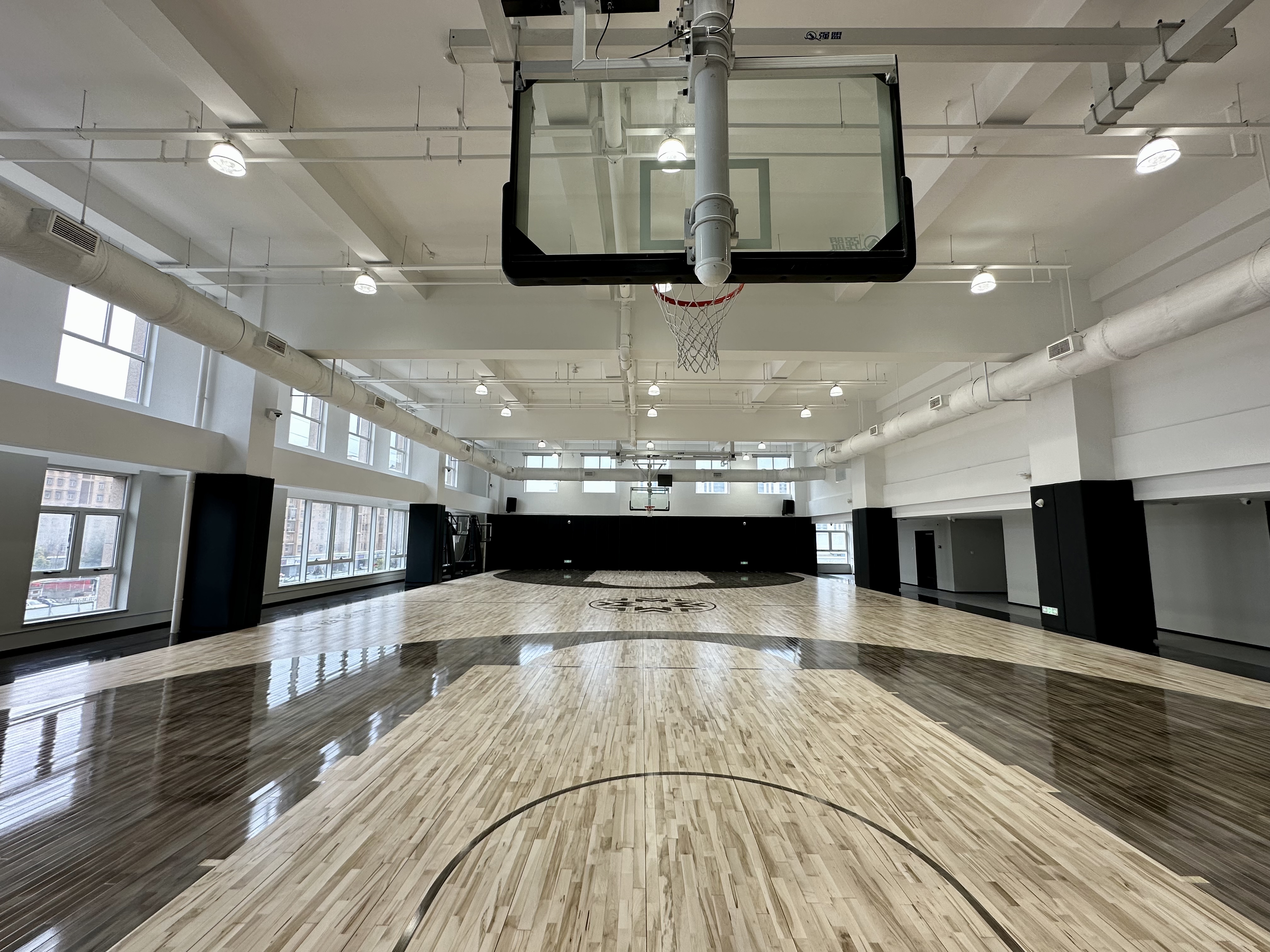 俱乐部配备专业健身房,有氧区使用了2022北京冬奥会运动员村同款的舒华V系列有氧设备、器械区则使用了全套美国诺德士自由力量和固定器械,区域内还配备专业的理疗床和筋膜刀等设备,可以提供运动、康复理疗课程;瑜伽团课室地面铺设石墨烯地热及实木地板,可以开设瑜伽、拉丁、爵士、肚皮舞、普拉提等课程;篮球场地面采用专业级运动北美枫木地板,面层使用了进口运动防滑漆,辅以电动可折叠球架,专业计分显示大屏,球场上部配有独立通风空调系统;直播间采用全透钢化玻璃墙,球场全区域尽收眼底,可进行全方位现场直播;休闲区以舒适为导向,配有实木桌椅,提供饮料、咖啡等服务配套设施。