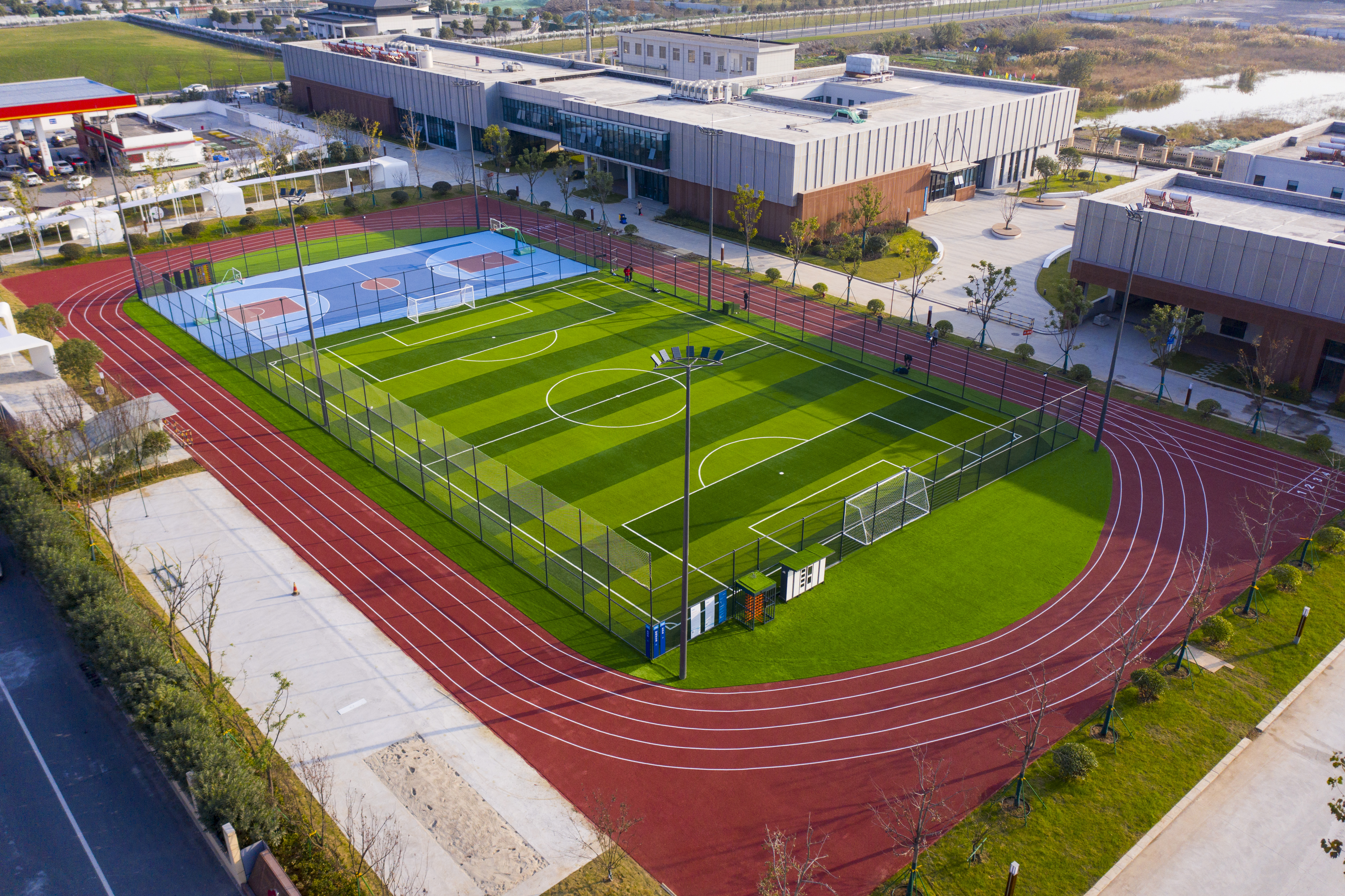 南京紫金体育产业股份有限公司打造的“云享动”智慧球场占地2600平方米,包括一个1750平方米的7人制足球场、一个标准篮球场和一条260米长的透气型跑道。足球场采用FIFA标准人工草坪(磅重12500,密度12000,每平方米填充TPE颗粒达8公斤)。篮球场采用新国标8mm标准。透气型跑道超新国标13mm标准,达15mm。较高的建设标准为用户提供优质的运动体验。